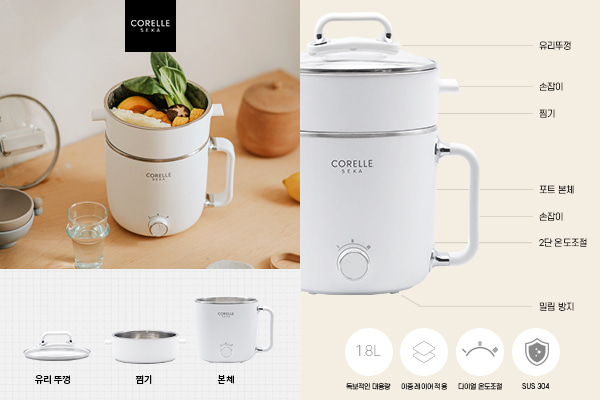 02. The stainless steel material is optimized for hygiene not only at the bottom where heating starts but also on all sides where food touches.
